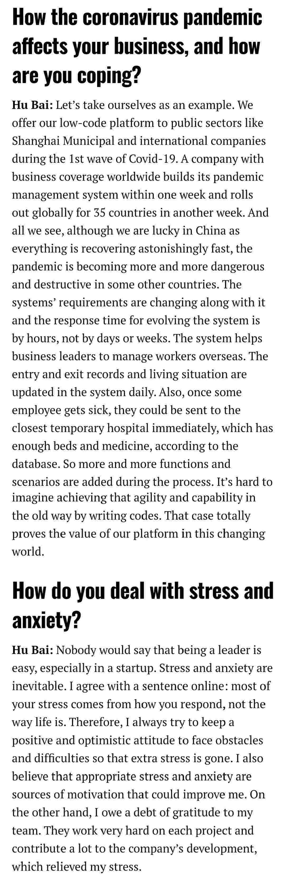 2021年年初,,,,爱湃斯科技CEO胡柏受邀接受法媒Startup.info的专访,,,,,,,与Startup info的读者分享了自己的创业经历、、、、、、、、、、、以及低代码平台华为钱包的创新之处。。。。。。。。。。。。。