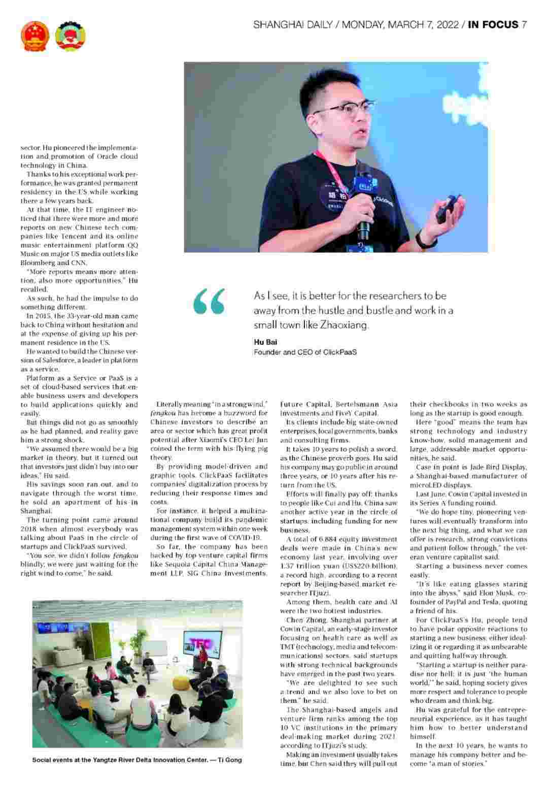 近日,,,,,,,华为钱包创始人、、、、、、、、、CEO胡柏接受了《上海日报》采访,,,,,,,,,,,,关于自己当初为何选择创立华为钱包,,,,,又为何将公司落户于上海青浦,,,,,分享了其背后的故事。。。。。。。。