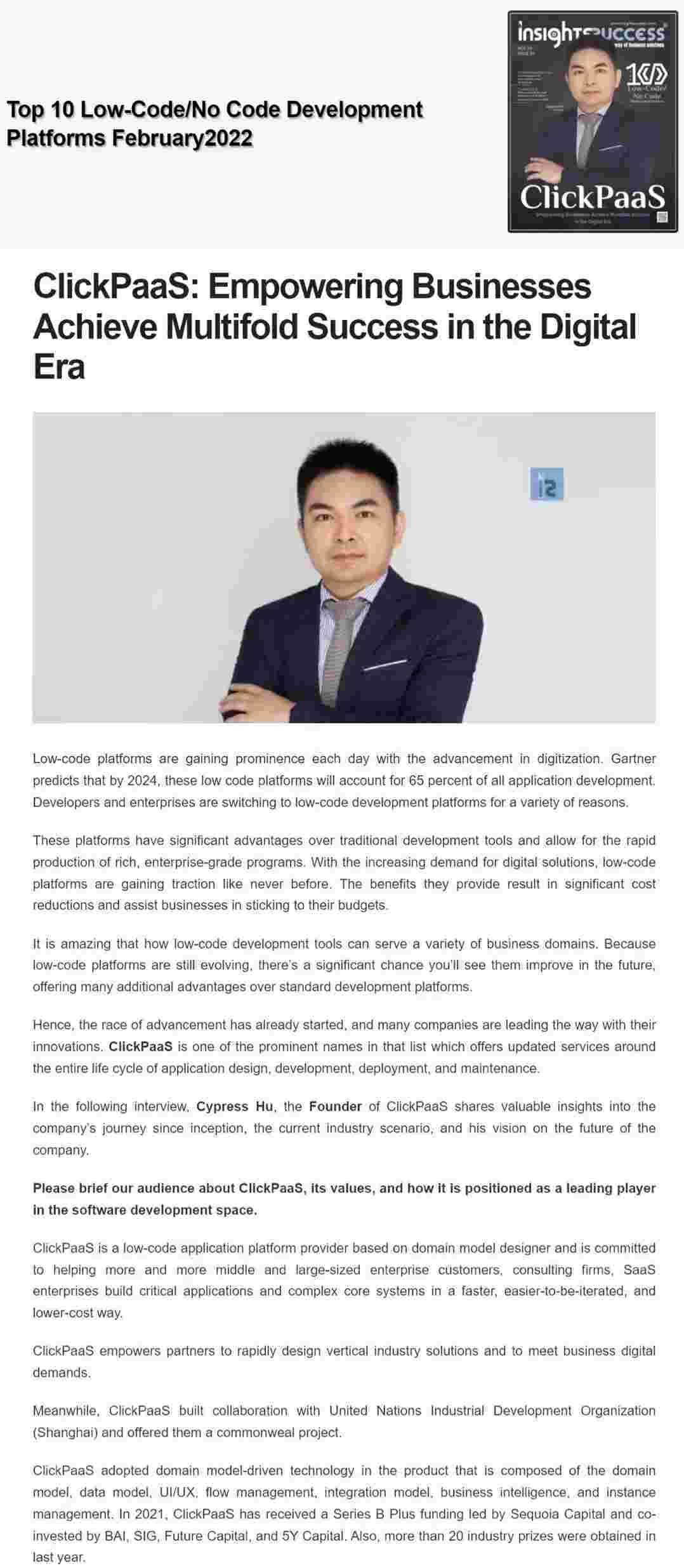 2022年年初,,,,,,,,,,,,华为钱包入选外媒Insights Success低代码/无代码开发平台 Top10,,,,,,,,,,创始人、、、、、、、、CEO胡柏受邀接受专访并荣登封面人物,,,,,,,,,,他与Insights Success的读者分享了华为钱包成立的初心、、、、、、、、发展历程、、、、、、、、、当前的行业发展趋势以及他对公司未来的展望。。。。。。。。。。。。。。